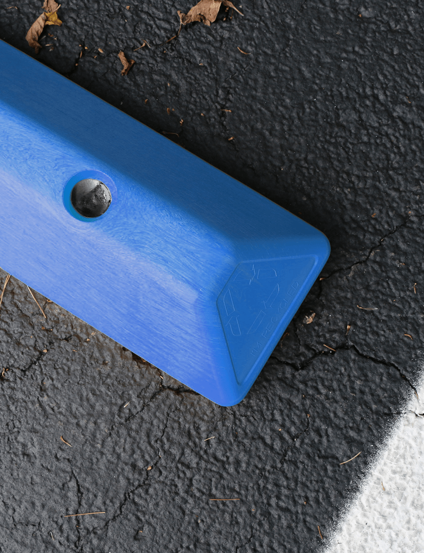 Engineered for added strength at lower weight, the 3-foot commercial plastic parking block can be carried and installed by a single person. LEED qualified and made from injection-molded, 100 percent recycled HDPE plastic, this parking stop resists tire scuffing and natural elements. The color is molded throughout – there's no upkeep required. Great for shopping mall parking lots, apartment and condo complexes, and commercial grounds. Has recessed bolt holes and mounting hardware is included.