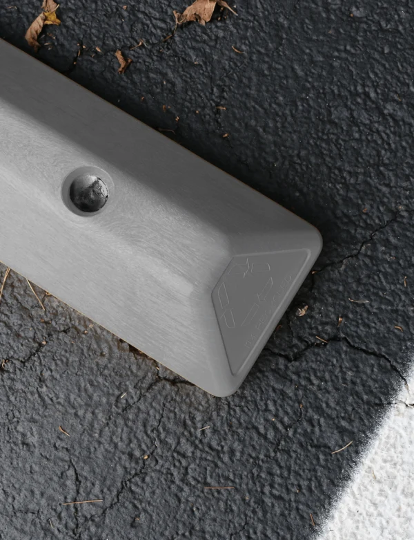 Engineered for added strength at lower weight, the 3-foot commercial plastic parking block can be carried and installed by a single person. LEED qualified and made from injection-molded, 100 percent recycled HDPE plastic, this parking stop resists tire scuffing and natural elements. The color is molded throughout – there's no upkeep required. Great for shopping mall parking lots, apartment and condo complexes, and commercial grounds. Has recessed bolt holes and mounting hardware is included.