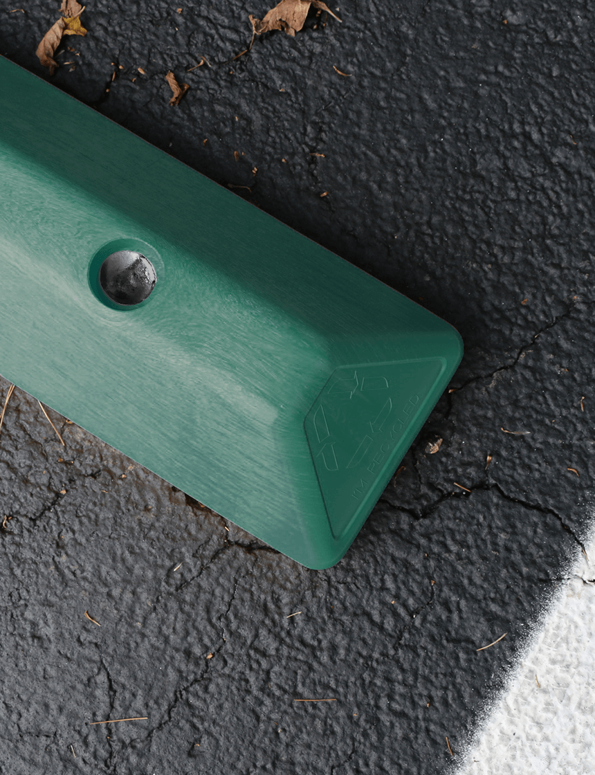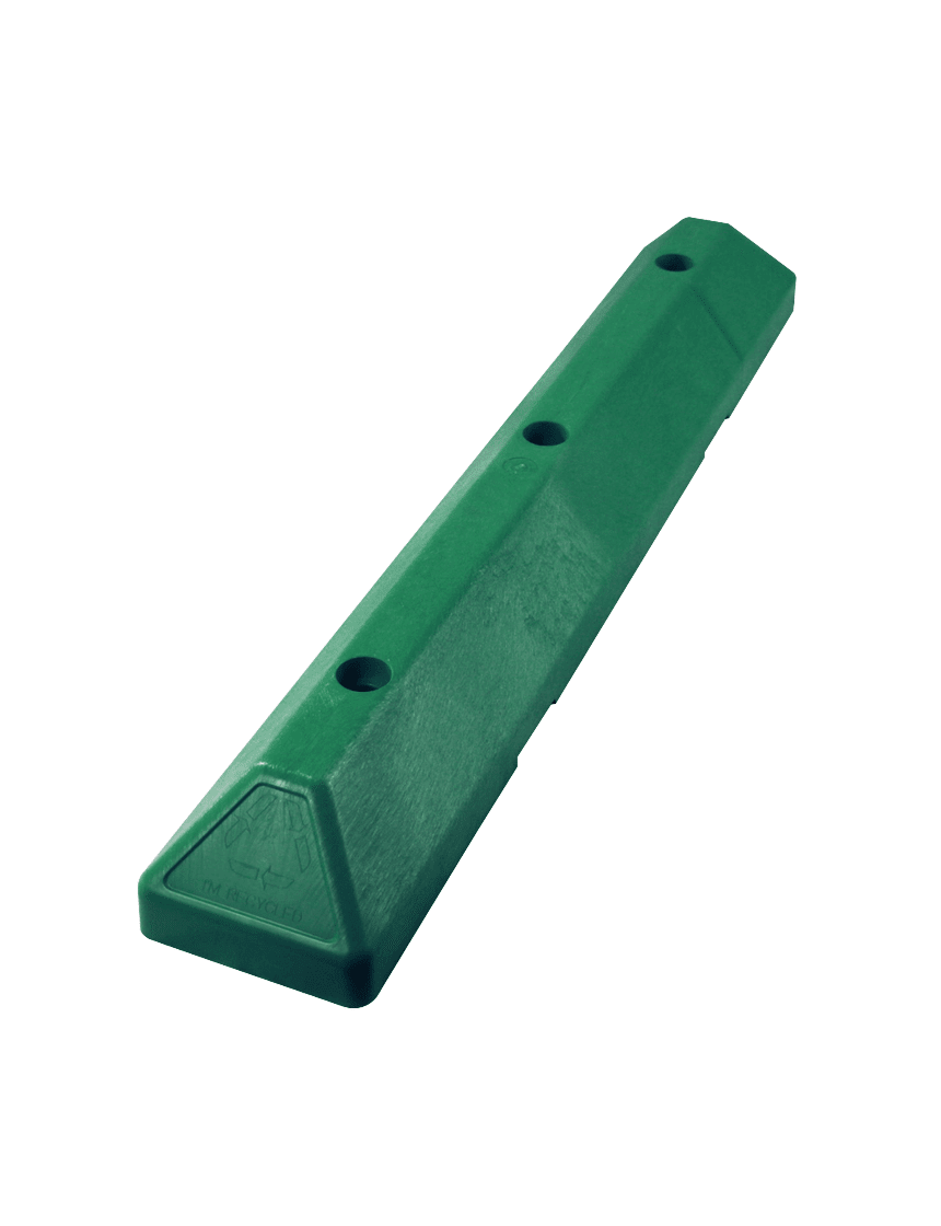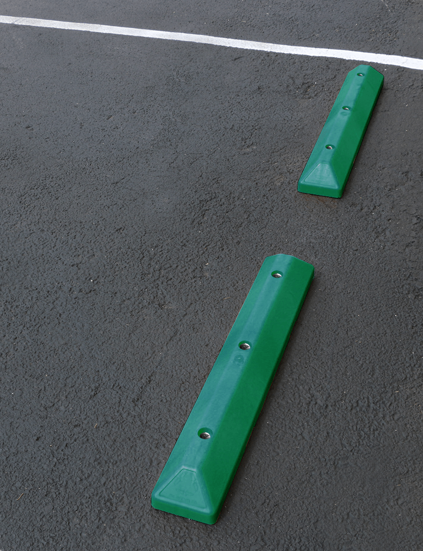 Engineered for added strength at lower weight, the 3-foot commercial plastic parking block can be carried and installed by a single person. LEED qualified and made from injection-molded, 100 percent recycled HDPE plastic, this parking stop resists tire scuffing and natural elements. The color is molded throughout – there's no upkeep required. Great for shopping mall parking lots, apartment and condo complexes, and commercial grounds. Has recessed bolt holes and mounting hardware is included.