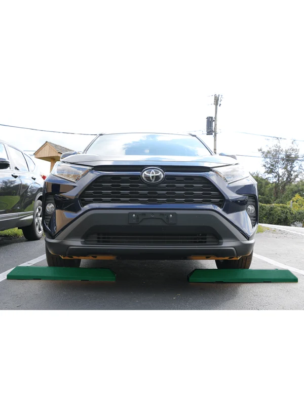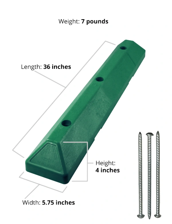 3' Green EV Recycled Plastic 'Commercial' Parking Block w/three 14" Galvanized Rebar Steel Spikes