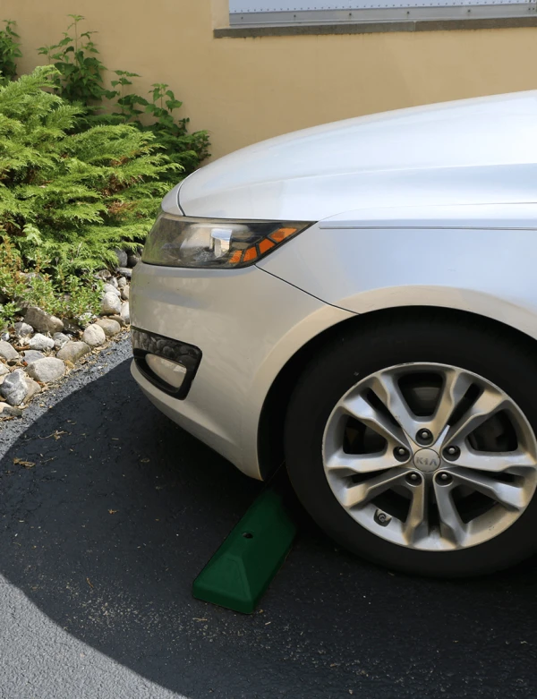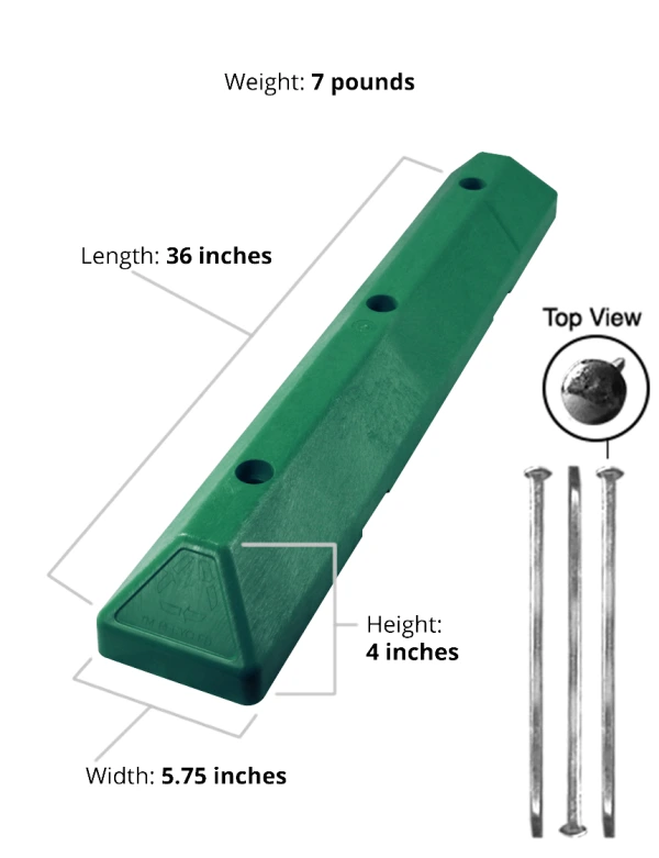 3' Green EV Recycled Plastic 'Commercial' Parking Block w/three 18" Galvanized Steel Spikes