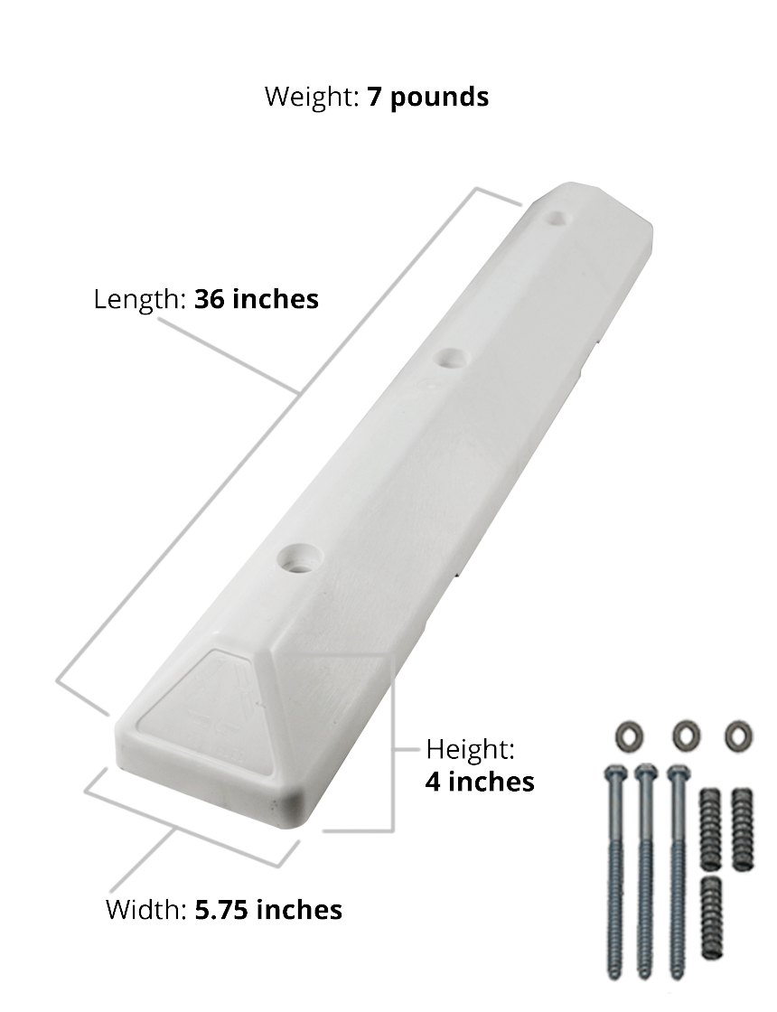3' White 'Commercial' Parking Block w/8" Lags & Anchors