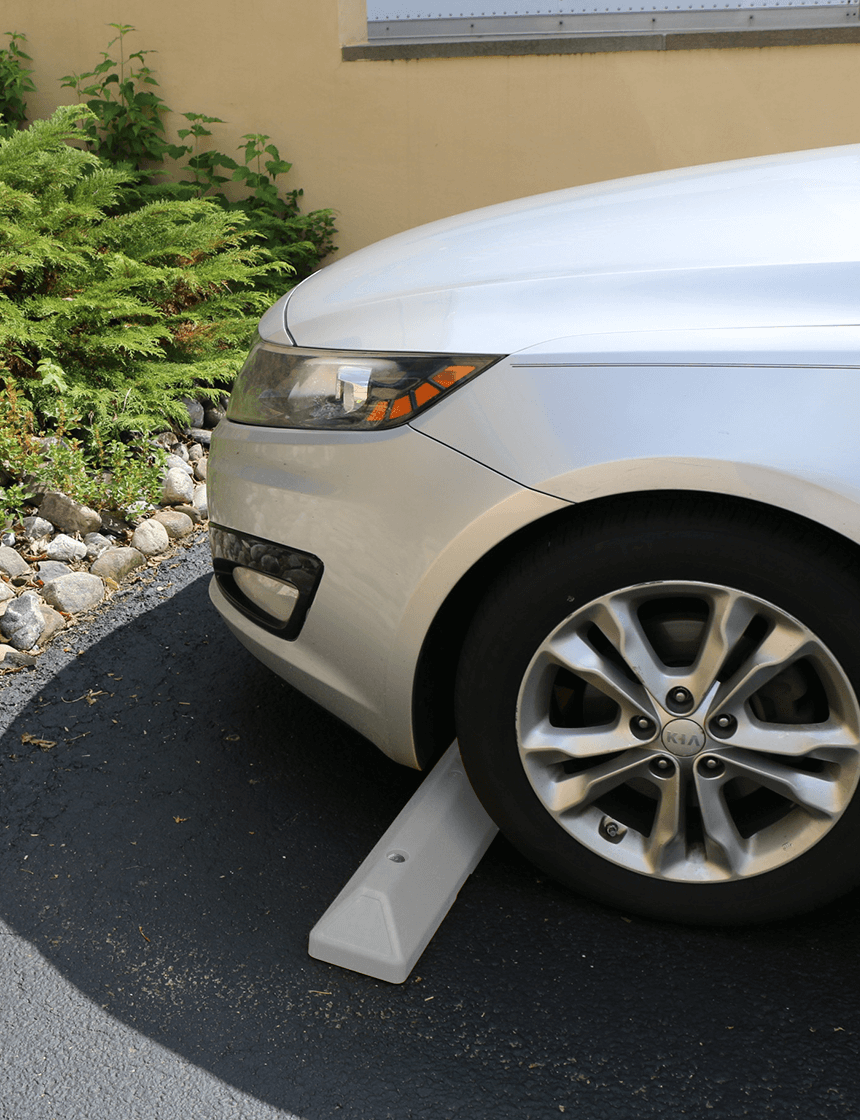 Engineered for added strength at lower weight, the 3-foot commercial plastic parking block can be carried and installed by a single person. LEED qualified and made from injection-molded, 100 percent recycled HDPE plastic, this parking stop resists tire scuffing and natural elements. The color is molded throughout – there's no upkeep required. Great for shopping mall parking lots, apartment and condo complexes, and commercial grounds. Has recessed bolt holes and mounting hardware is included.