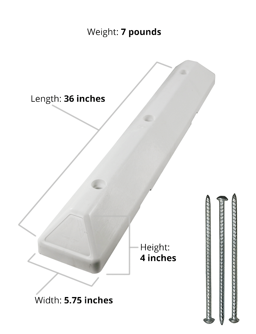 3' White Recycled Plastic 'Commercial' Parking Block w/three 14" Galvanized Rebar Steel Spikes