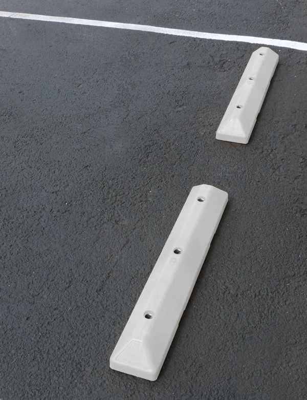 Engineered for added strength at lower weight, the 3-foot commercial plastic parking block can be carried and installed by a single person. LEED qualified and made from injection-molded, 100 percent recycled HDPE plastic, this parking stop resists tire scuffing and natural elements. The color is molded throughout – there's no upkeep required. Great for shopping mall parking lots, apartment and condo complexes, and commercial grounds. Has recessed bolt holes and mounting hardware is included.