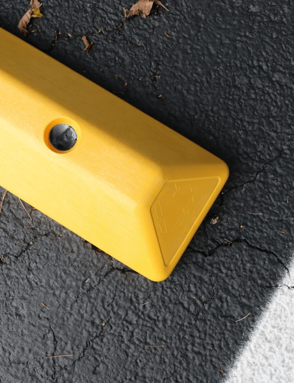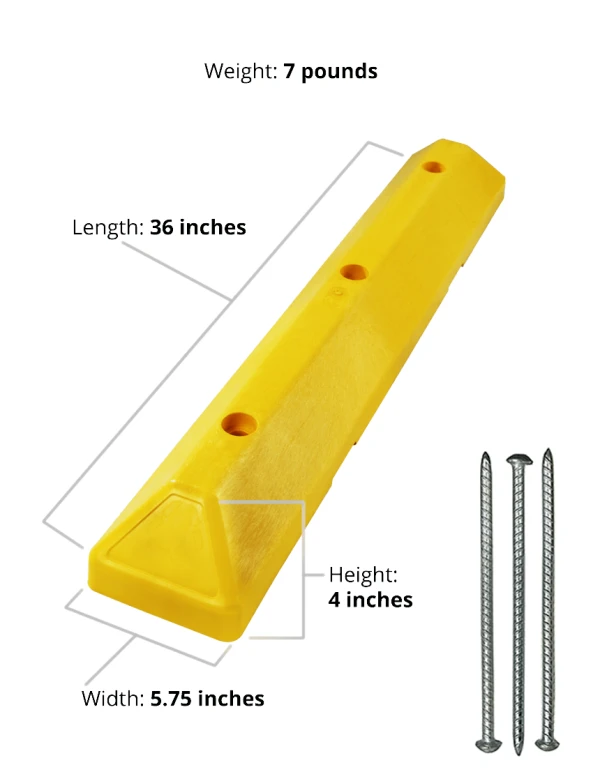 3' Yellow Recycled Plastic 'Commercial' Parking Block w/three 14" Galvanized Rebar Steel Spikes