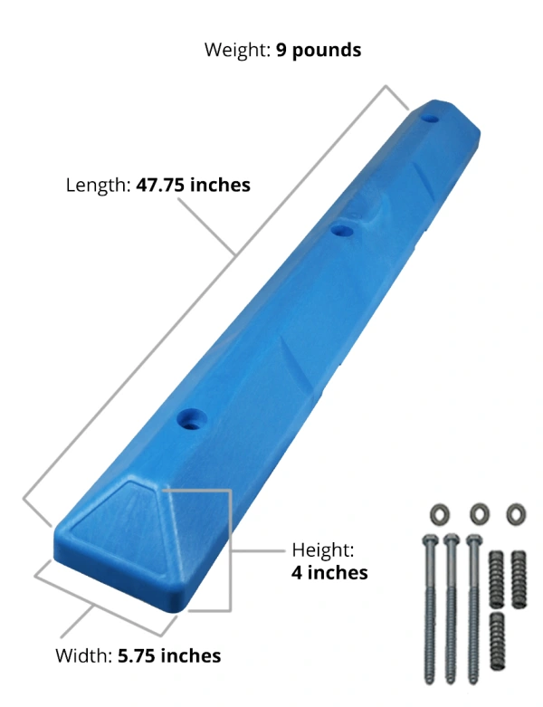 4' Blue 'Commercial' Parking Block w/8" Lags & Anchors