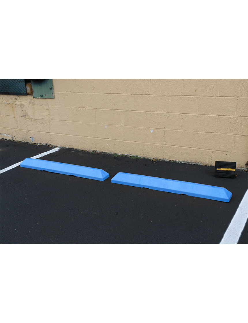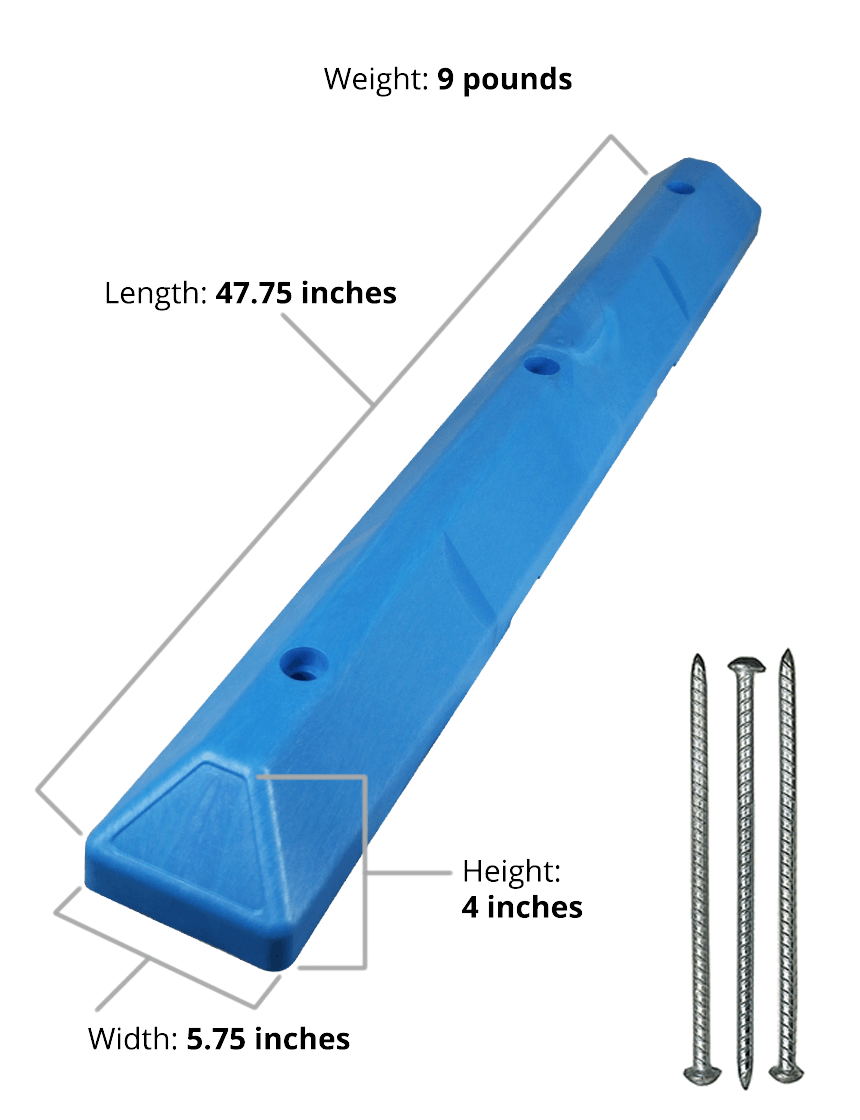 4' Blue Recycled Plastic 'Commercial' Parking Block w/three 14" Galvanized Rebar Steel Spikes
