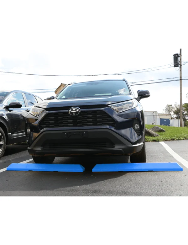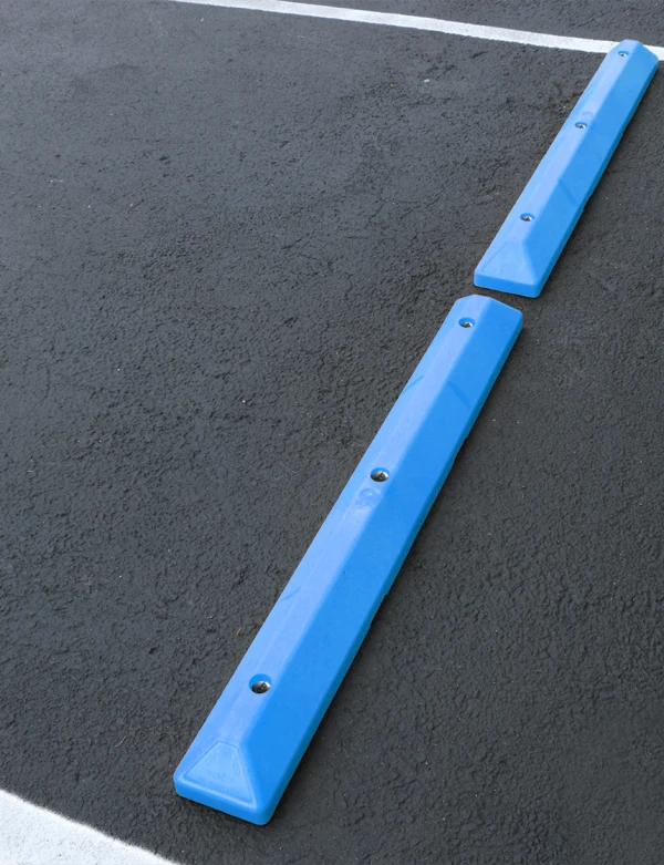 4' Blue Recycled Plastic 'Commercial' Parking Block w/three 18" Galvanized Steel Spikes
