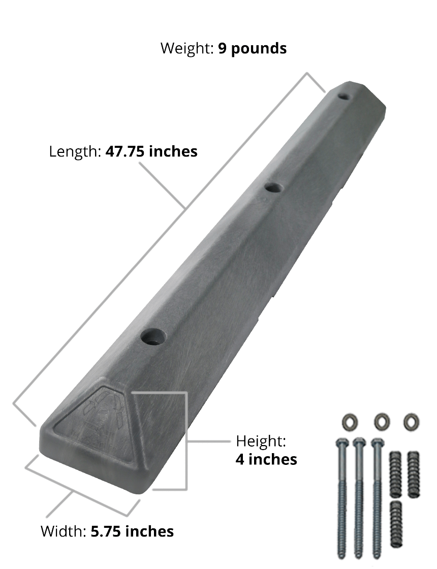 4' Gray 'Commercial' Parking Block w/8" Lags & Anchors