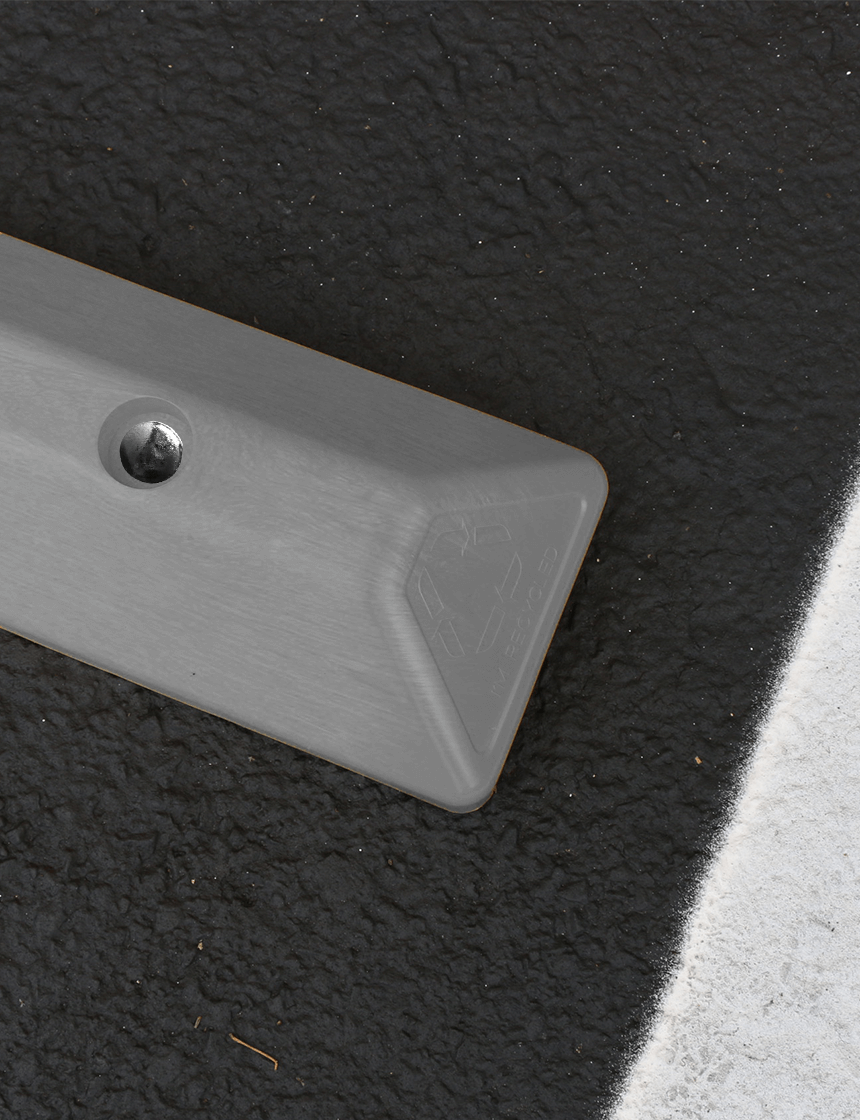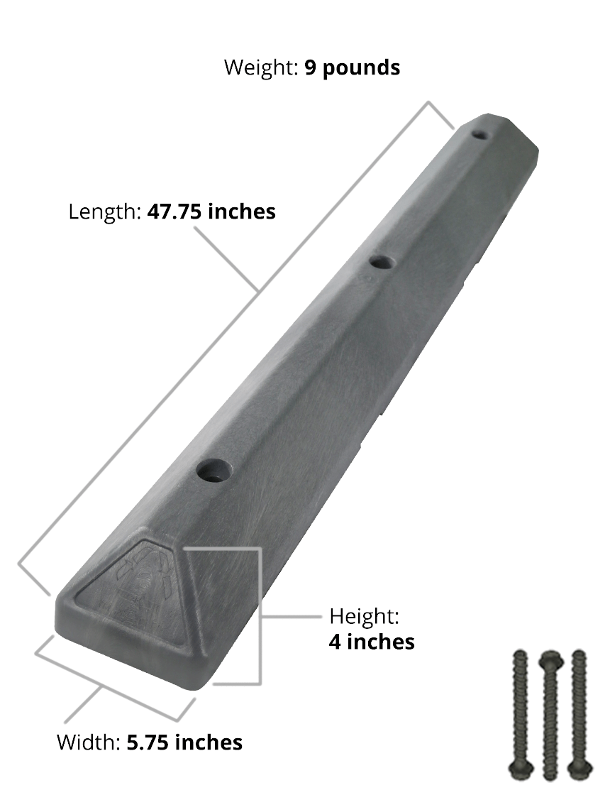 4' Gray 'Commercial' Parking Block with three (3) Wedge-Bolt fasteners for Concrete
