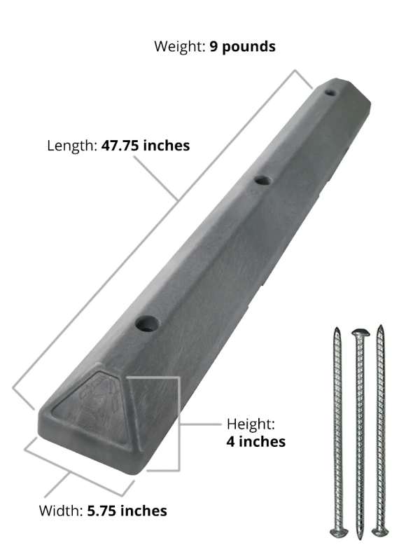 4' Gray Recycled Plastic 'Commercial' Parking Block w/three 14" Galvanized Rebar Steel Spikes
