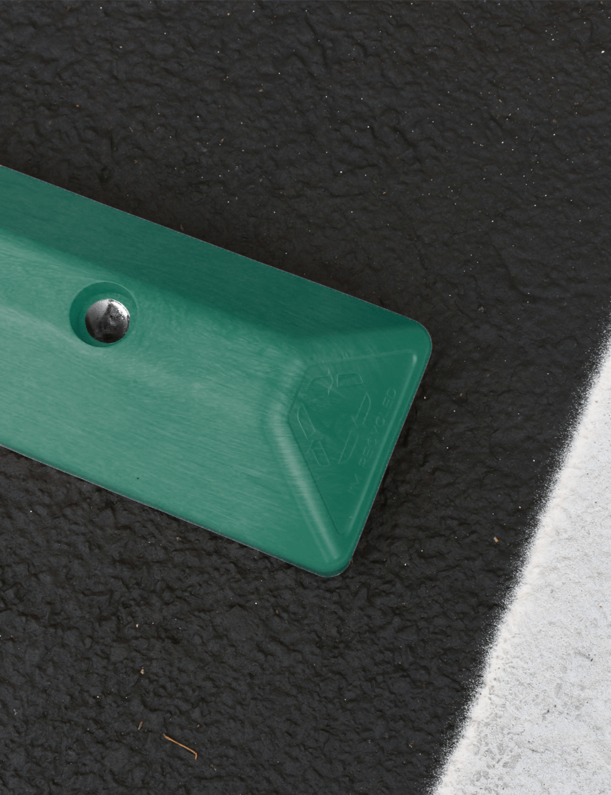 4' Green EV 'Commercial' Parking Block with three (3) Wedge-Bolt fasteners for Concrete
