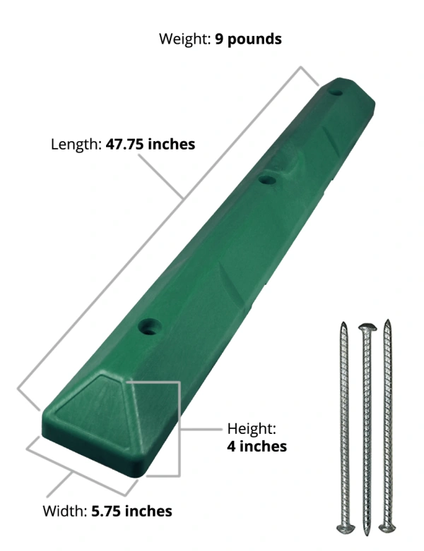 4' Green EV Recycled Plastic 'Commercial' Parking Block w/three 14" Galvanized Rebar Steel Spikes