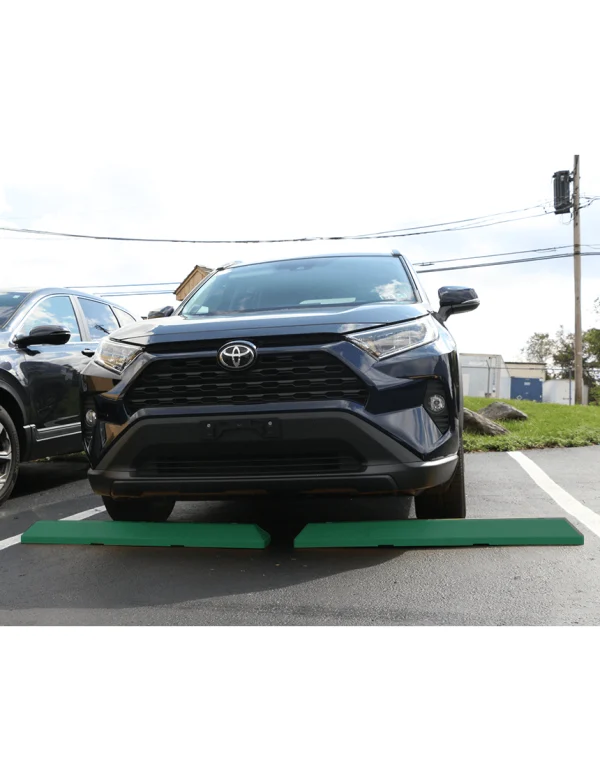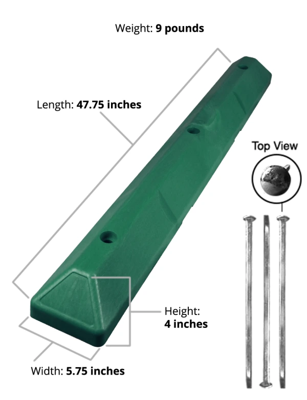 4' Green EV Recycled Plastic 'Commercial' Parking Block w/three 18" Galvanized Steel Spikes