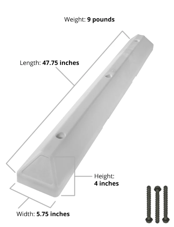4' White 'Commercial' Parking Block with three (3) Wedge-Bolt fasteners for Concrete