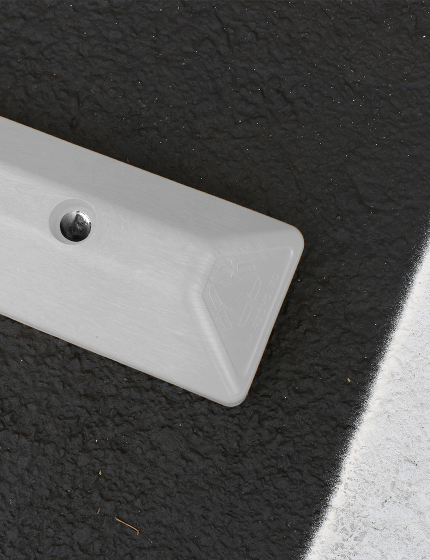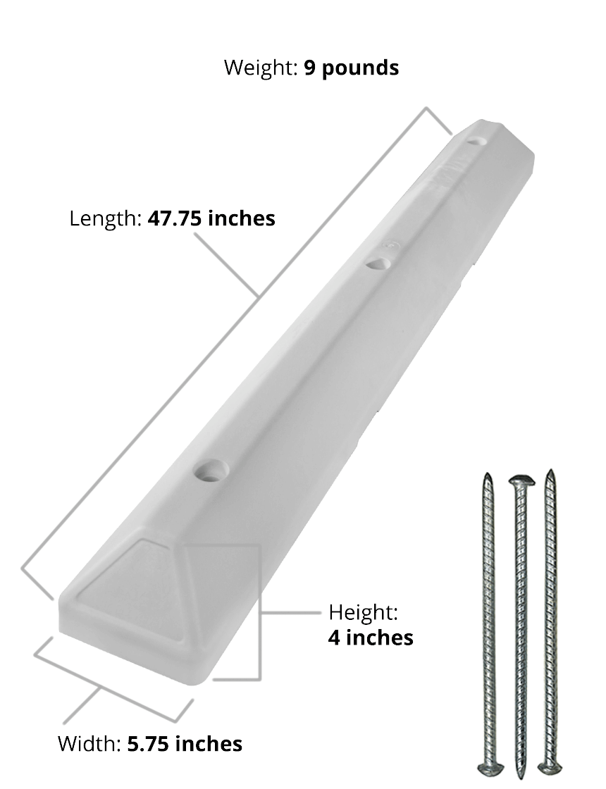 4' White Recycled Plastic 'Commercial' Parking Block w/three 14" Galvanized Rebar Steel Spikes