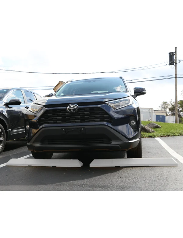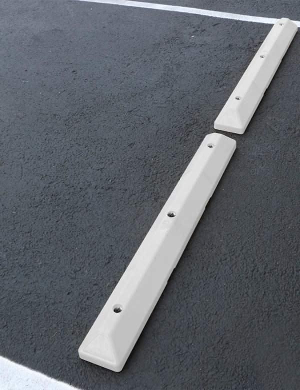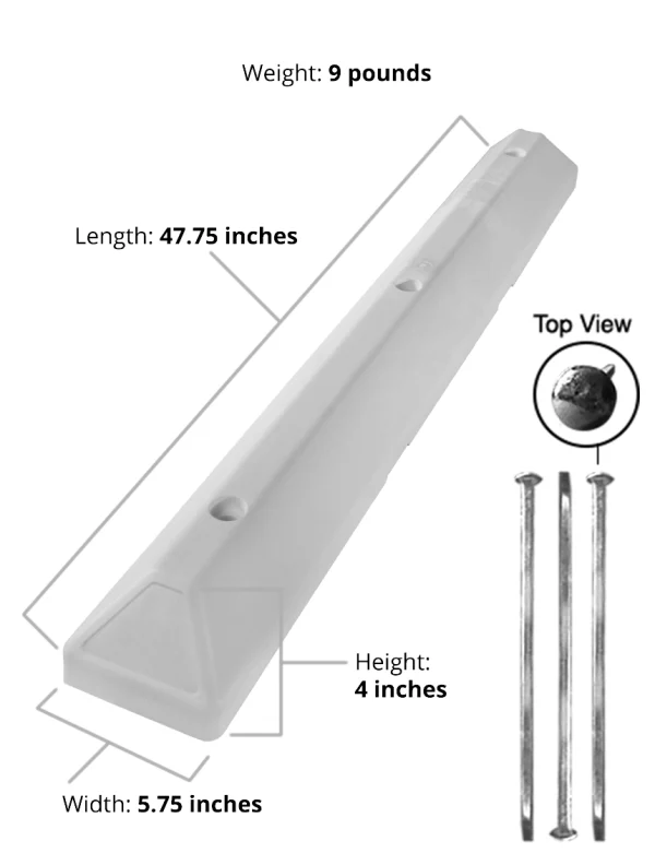 4' White Recycled Plastic 'Commercial' Parking Block w/three 18" Galvanized Steel Spikes