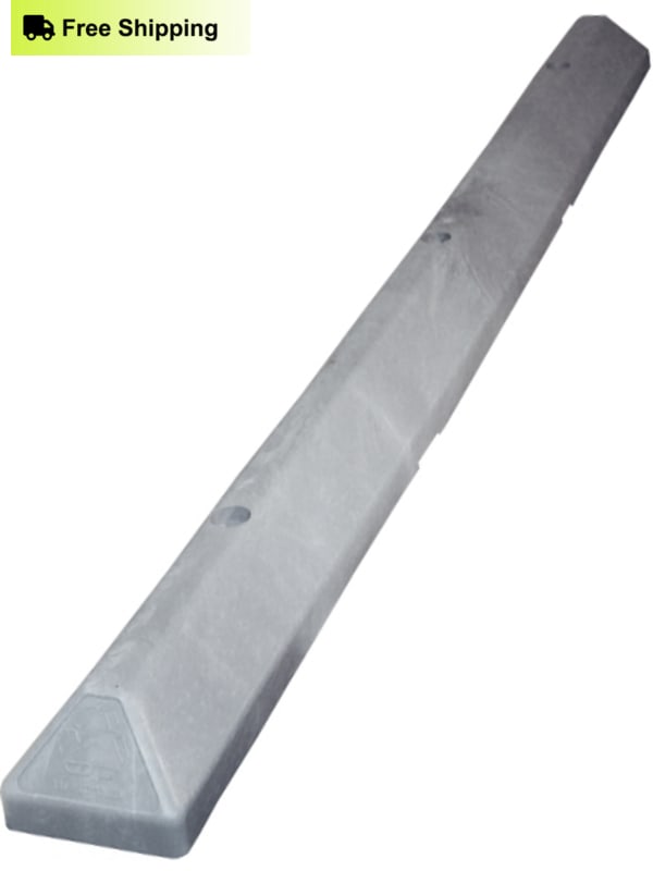 6' Gray Recycled Plastic 'Commercial' Parking Block w/three 12" Galvanized Steel Spikes