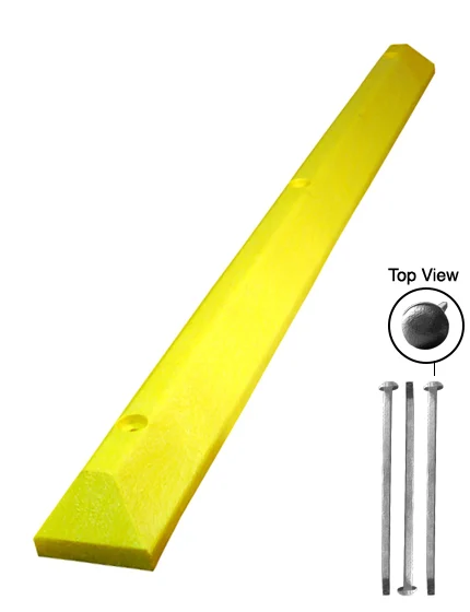 6' Yellow, Heavy-Duty Solid Recycled Plastic Parking Block w/12" Galvanized Steel Spikes