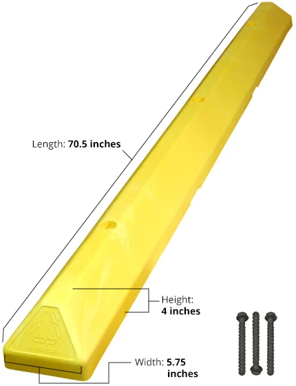 6' Yellow 'Commercial' Parking Block with three (3) Wedge-Bolt fasteners for Concrete