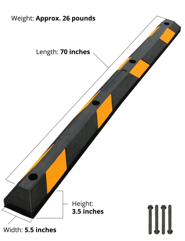 6' Yellow Low-Profile Rubber Parking Block w/four 5" Concrete Bolts